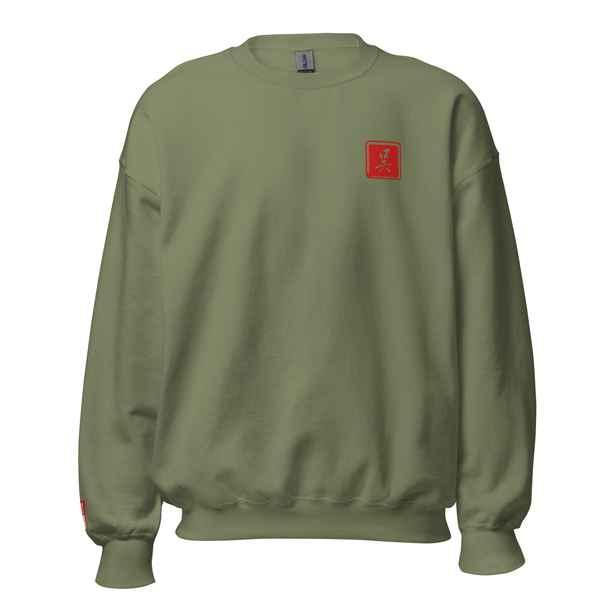 The front and right sleeve designs are embroidered, the back design is DTG printed.